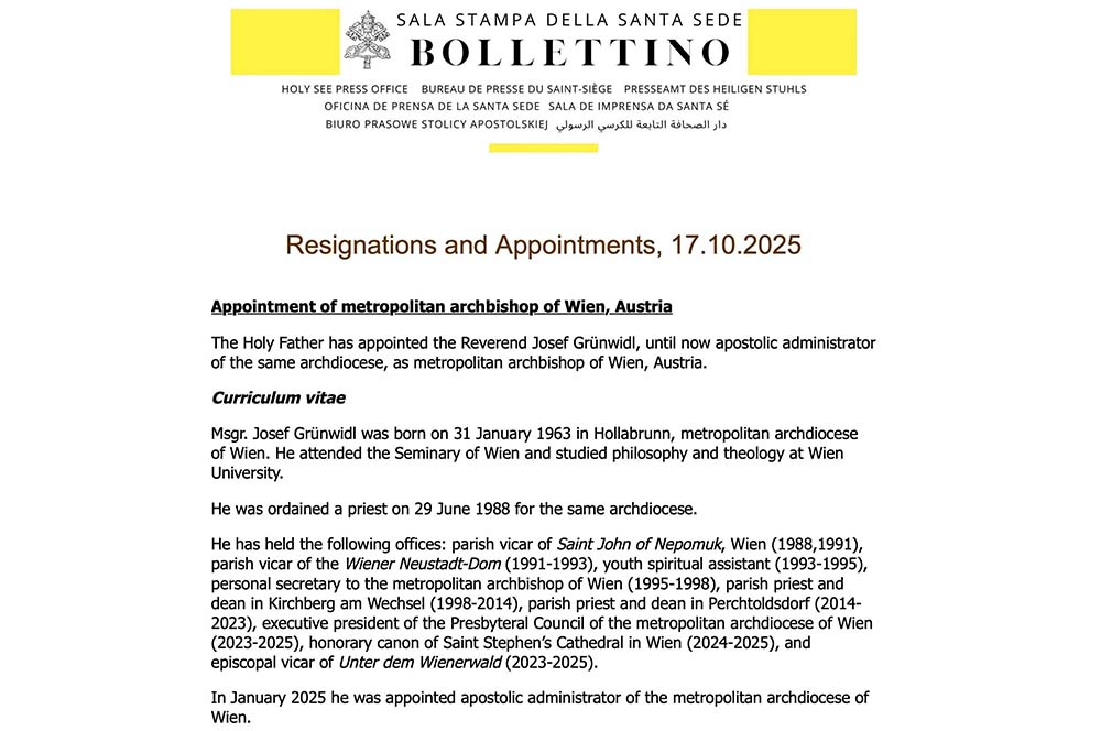 Zur offiziellen Verlautbarung der Erzdiözese Wien inkl. Video-Statement des neuen Erzbischofs: https://www.erzdioezese-wien.at/site/home/nachrichten/article/133071.html